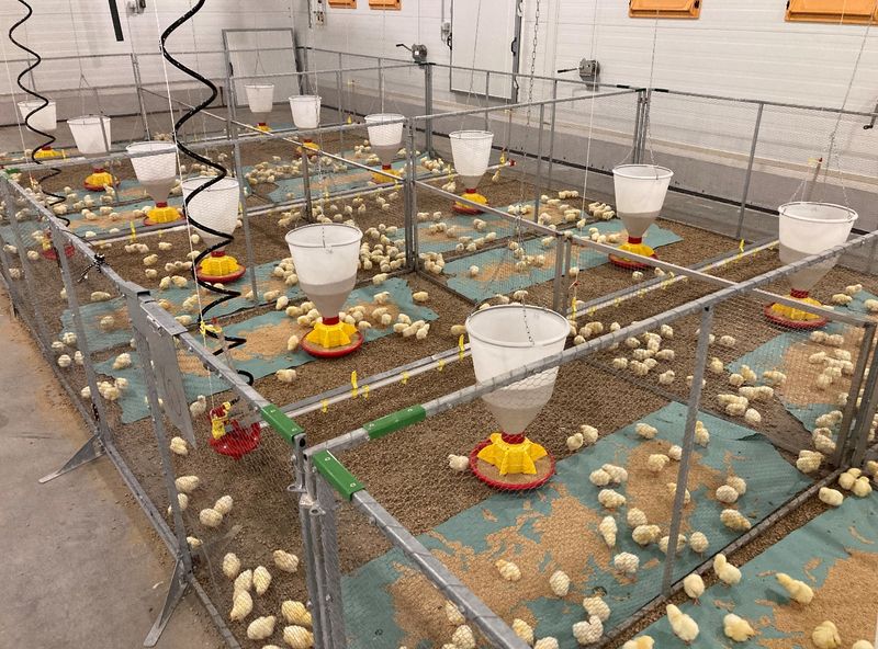 2x8, a total of 16 cubicles in the two housing rooms 900-1000 birds can be housed per cubicle Maximum bird count: 15,000 birds 2 feed treatments can be started with 8 repetitions Block allocation Basic measurement data: Daily body weight, feed intake, weight gain, feed conversion, water consumption, mortality, EPEF Measurements are performed at startup, control measurements during the cycle, and at shipment